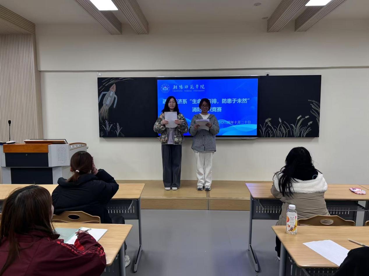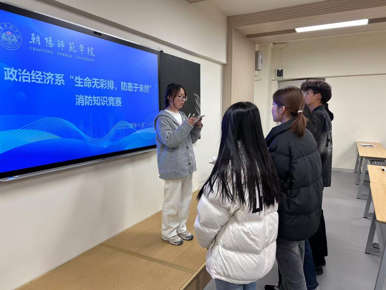 为了营造“人人关心消防,人人参与消防”的良好校园氛围,共同维护校园消防安全。政治经济系特于2024年10月20日18:30,在合班教室325举办“生命无彩排,防患于未然”消防知识竞赛活动。24级学生参加本次活动。
