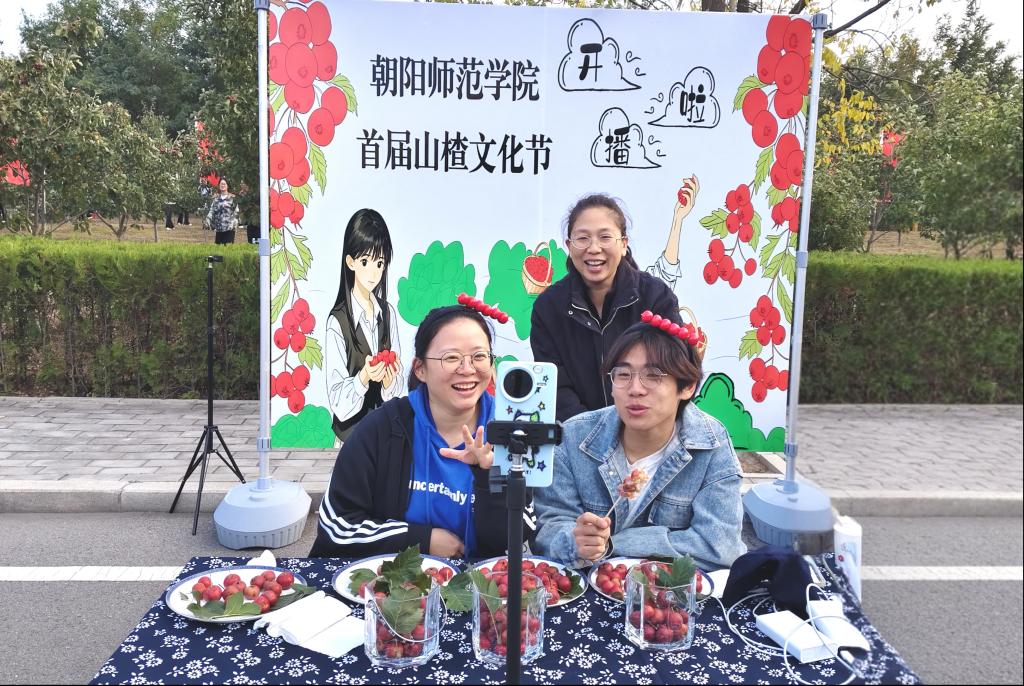 我院在现场搭建简易直播间,师生们携手站上“C位”,用热情洋溢的讲解向观众传递山楂节的魅力与山楂文化的深厚底蕴。这场直播不仅是对山楂节的宣传,更是学院“新媒体营销”课程的实践课堂。课堂上学习的直播技巧、镜头语言、产品卖点挖掘等知识,在这里得到了生动地运用。学生们从台前到幕后,全面参与直播策划与执行,真正将理论知识转化为实战技能;从青涩到熟练,在镜头前自信讲解山楂故事,将山楂文化与经济价值巧妙融合,为未来的就业之路积累了宝贵经验。