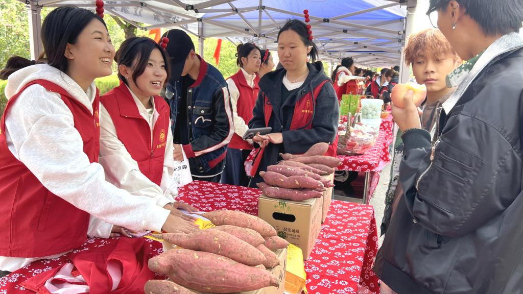 更为亮眼的是学生积极参与助农活动,助力销售朝阳本地农副产品。活动现场,琳琅满目的鸭蛋、红薯、杂粮等特色农副产品吸引许多人驻足选购。学生们热情推销,耐心讲解产品特色,积极与顾客沟通,摊位前人气满满。此次活动让学生在实践中感受到劳动的价值与助人的快乐,增强了社会责任感,感悟经济管理知识服务乡村振兴的厚重使命。