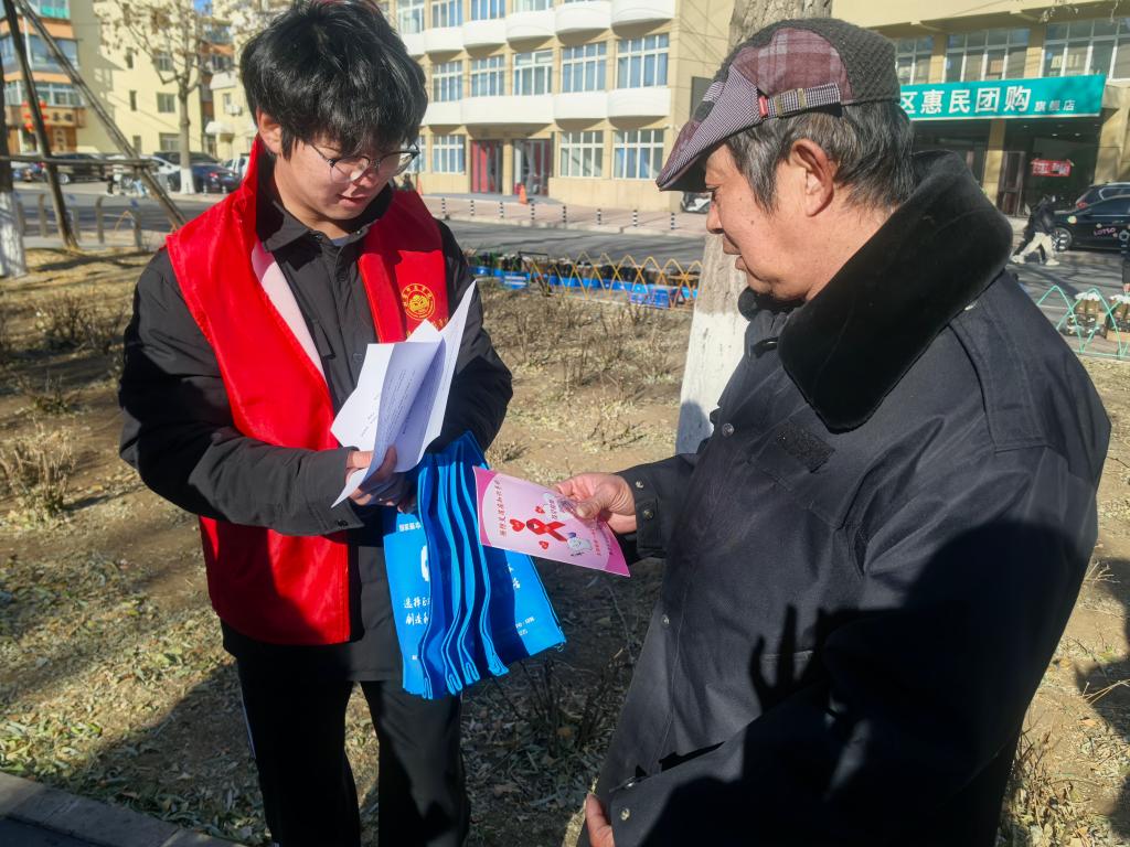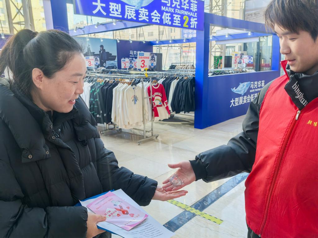 游戏环节后,学生志愿者为过往市民发放防艾宣传手册与防艾认知调查问卷。通过这种方式帮助大家了解科学的防艾方法、检测渠道等知识,居民们在完成问卷后,均可领取定制的防艾钥匙扣。