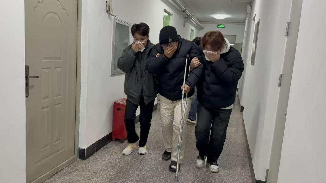 演练模拟九号公寓303寝室、十号公寓208寝室突发火情。警报响起后,学生在各楼层引导员的指挥下,用湿毛巾捂住口鼻,保持低姿,沿预定疏散路线迅速、有序撤离至风雨操场集合点。