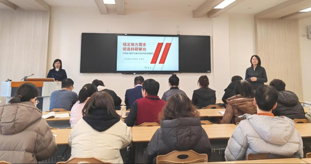 2025年12月26日,朝阳师范学院经济与管理学院在教2-323举办了一场主题为“对接地方需求,强化科研能力”的专题讲座,特邀朝阳市委党校李宝玲教授担任主讲人,经济与管理学院全体专任教师参与此次讲座。讲座伊始,李教授以“高校科研痛点”开篇,剖析科研成果落地难、转化率低问题,同时指出朝阳市等区域产业升级在装备制造、现代农业等领域亟需技术、人才、智力支撑,强调实现“高校科研价值+地方发展效益”双赢的核心目标。
